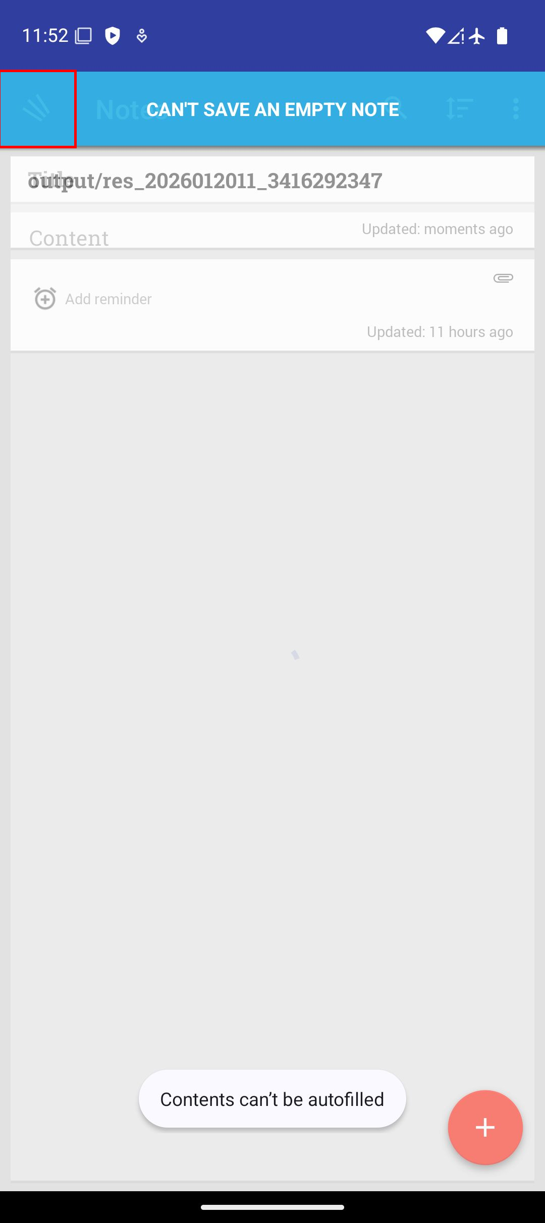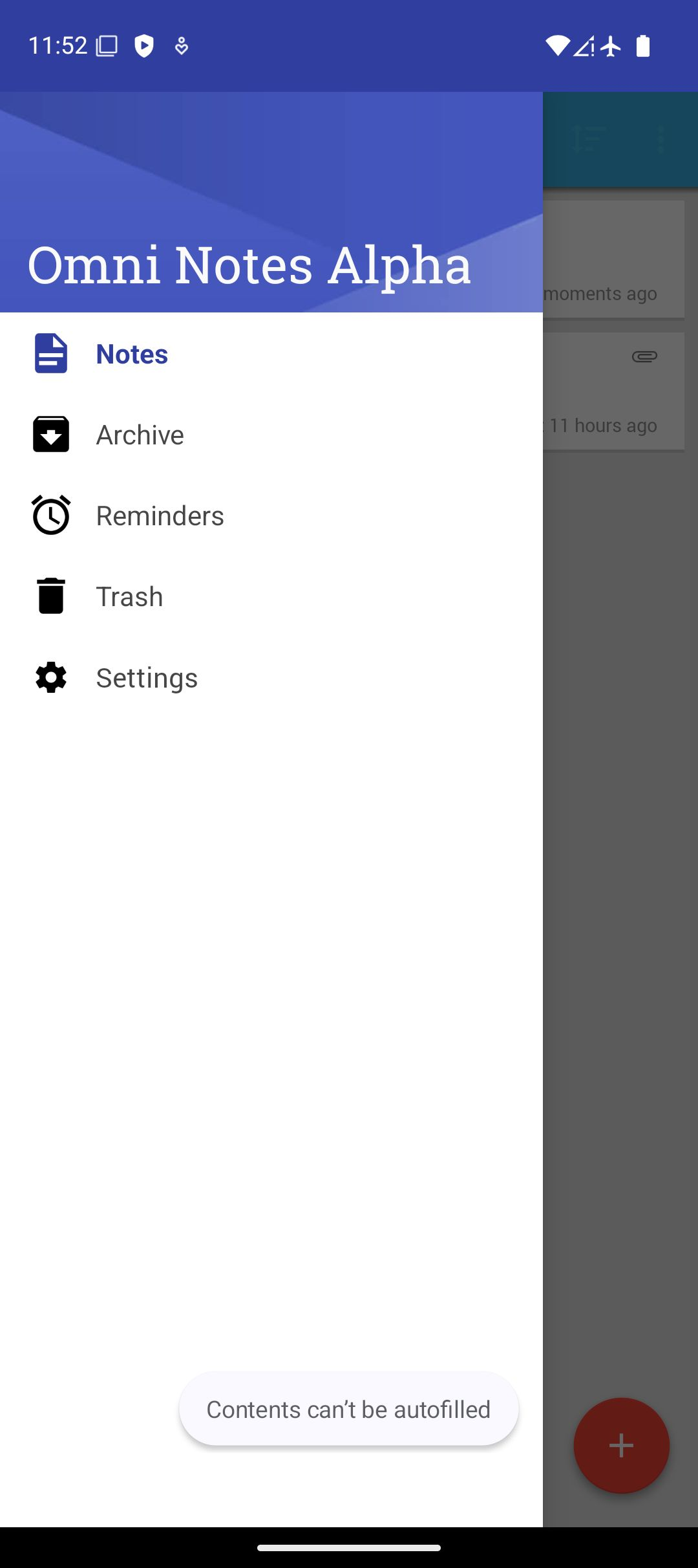 Stack Trace:CRASH: it.feio.android.omninotes.alpha (pid 14627) (dump time: 2026-01-20 22:22:21 Version: Long Msg: java.lang.NullPointerException: Parameter specified as non-null is null: method it.feio.android.omninotes.alpha.applock.delegate.WindowCallbackWrapper.onMenuOpened, parameter menu at it.feio.android.omninotes.alpha.delegate.WindowCallbackWrapper.onMenuOpened(Unknown Source:2) at com.android.internal.policy.PhoneWindow$ActionMenuPresenterCallback.onOpenSubMenu(PhoneWindow.java:2500) at com.android.internal.view.menu.BaseMenuPresenter.onSubMenuSelected(BaseMenuPresenter.java:211) at android.widget.ActionMenuPresenter.showOverflowMenu(ActionMenuPresenter.java:560) at android.widget.ActionMenuPresenter$OverflowMenuButton.performClick(ActionMenuPresenter.java:893) at android.view.View.performClickInternal(View.java:8009) at android.view.View.-$$Nest$mperformClickInternal(Unknown Source:0) at android.view.View$PerformClick.run(View.java:31484) at android.os.Handler.handleCallback(Handler.java:959) at android.os.Handler.dispatchMessage(Handler.java:100) at android.os.Looper.loopOnce(Looper.java:301) at android.os.Looper.loop(Looper.java:398) at android.app.ActivityThread.main(ActivityThread.java:9055) at java.lang.reflect.Method.invoke(Native Method) at com.android.internal.os.RuntimeInit$MethodAndArgsCaller.run(RuntimeInit.java:627) at com.android.internal.os.ZygoteInit.main(ZygoteInit.java:970) |